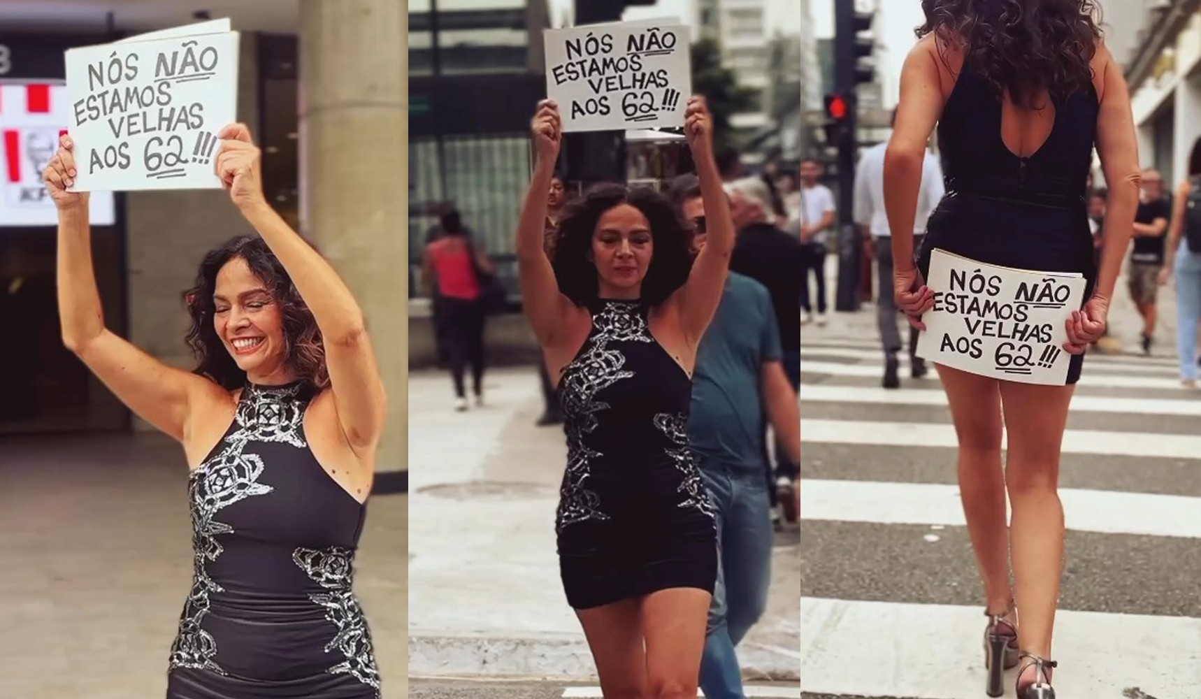 Claudia Ohana fez um protesto contra o etarismo em uma das principais avenidas de São Paulo. A atriz, que completou 62 anos em fevereiro, caminhou pela Avenida Paulista carregando um cartaz com uma mensagem que dizia: