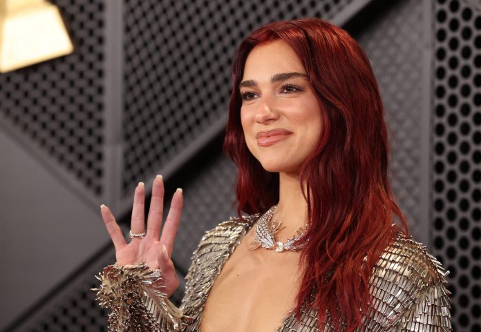 Cantoras de 29 anos se destaca em ranking do jornal britânico ‘Sunday Times’. Dua Lipa posa no tapete vermelho enquanto participa do 66º Grammy Awards em Los Angeles, neste domingo (4).