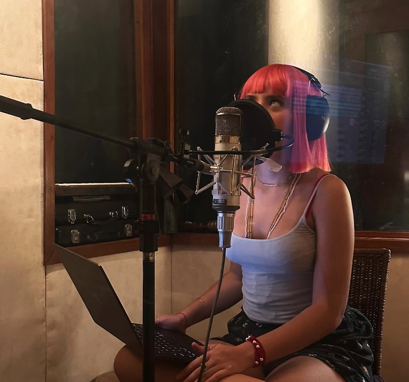 Flor Gil em estúdio na gravação do primeiro álbum da artista, ‘Cinema love’