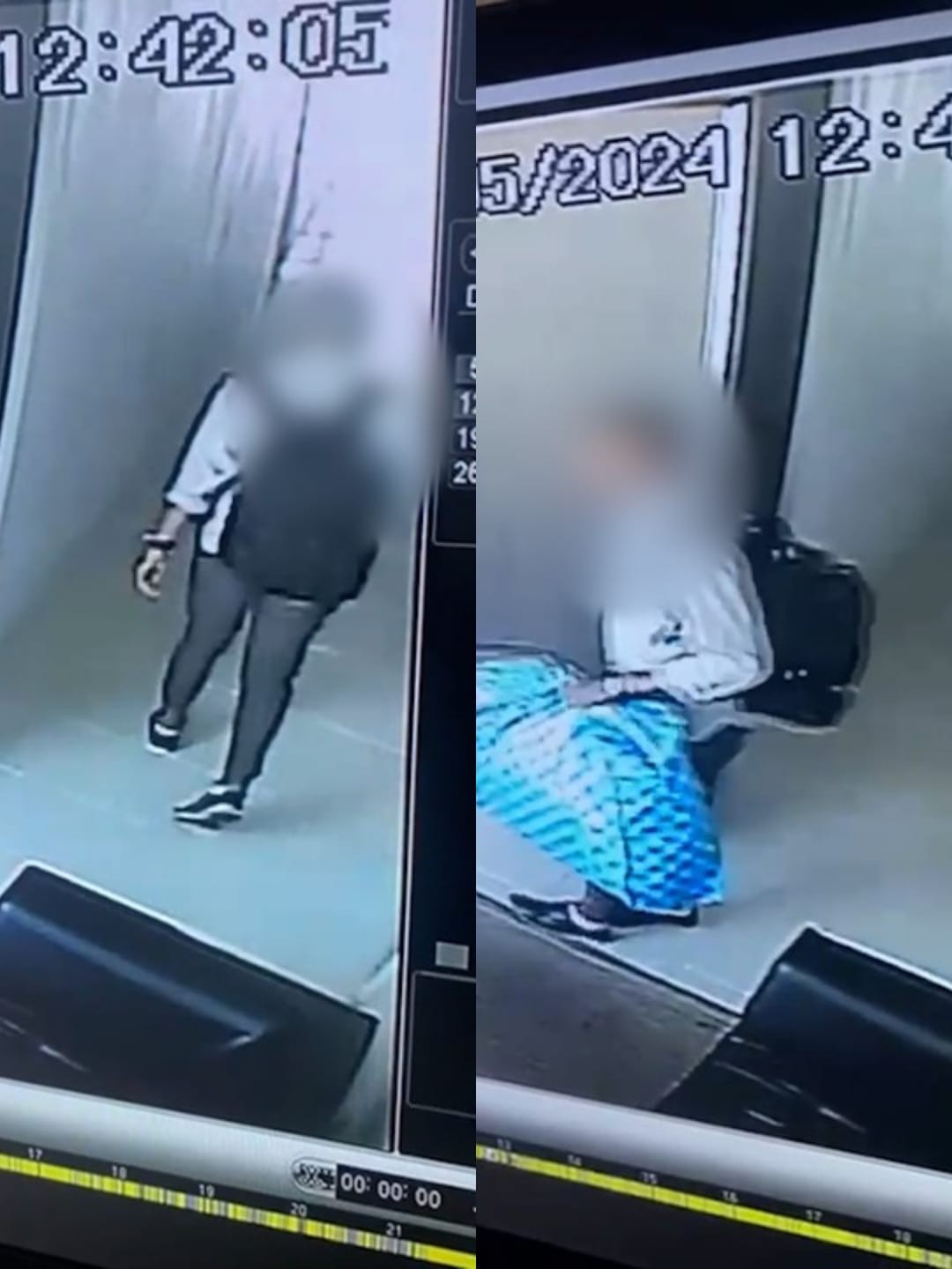 Quando o homem retorna, já está com um tipo de sacola azul nas mãos. Ele saiu do hotel às 12h43 de terça-feira (14). Poucos minutos depois, às 13h, as camareiras entraram no quarto para fazer a limpeza e deram falta da televisão.