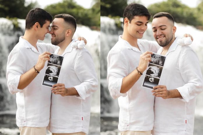 Casal anunciou a novidade pelas redes sociais: ‘O que parecia tão distante, hoje já completa 5 meses de gestação’. Lucas Rangel e Lucas Bley anunciam que vão ser pais