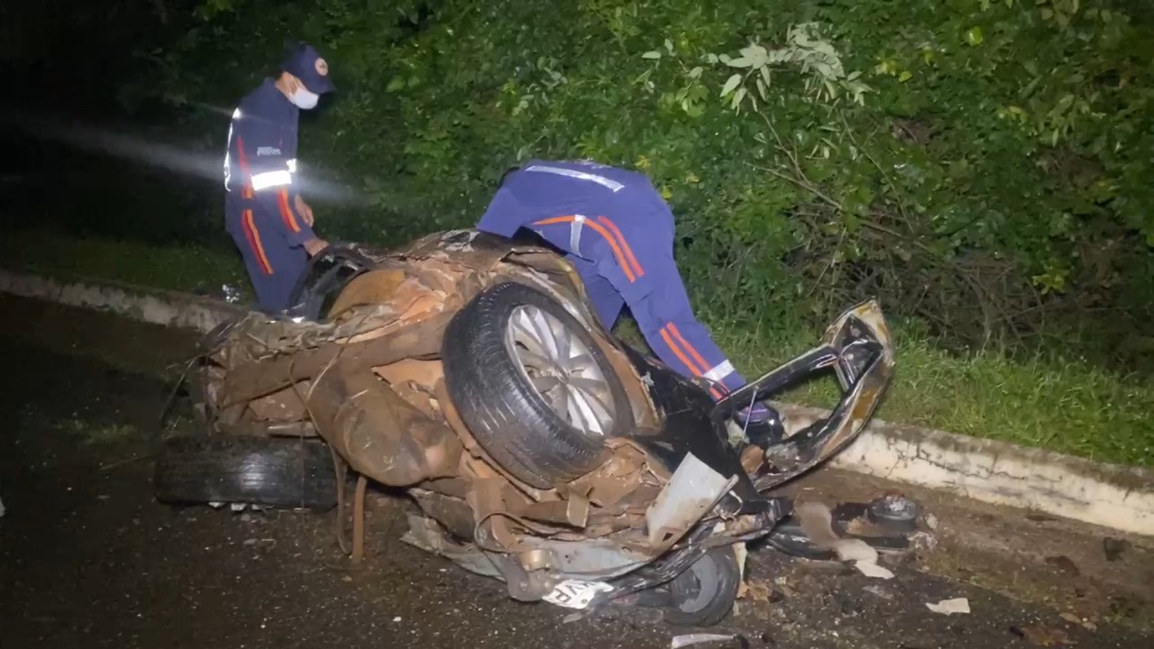 Carro ficou completamente destruído após acidente na BR-153, próximo de Nova Olinda