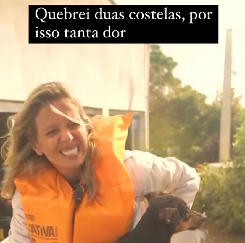 “Duas costelas quebradas, por isso não estava mais aguentando de dor. Diante de tanto sofrimento, continuei os resgates mesmo com a dor insuportável que estava. Mas teve uma hora que os remédios fortíssimos já não faziam mais efeito”, disse ela em um post no Instagram.