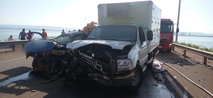 Acidente entre caminhão baú e picape deixa duas pessoas feridas na ponte que liga Palmas e Luzimagues