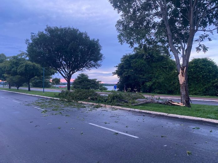 Por imagens registradas pela TV Anhanguera, é possível ver árvores caídas nas avenidas que atingiram a rede elétrica, comprometendo alguns bairros de Porto Nacional.