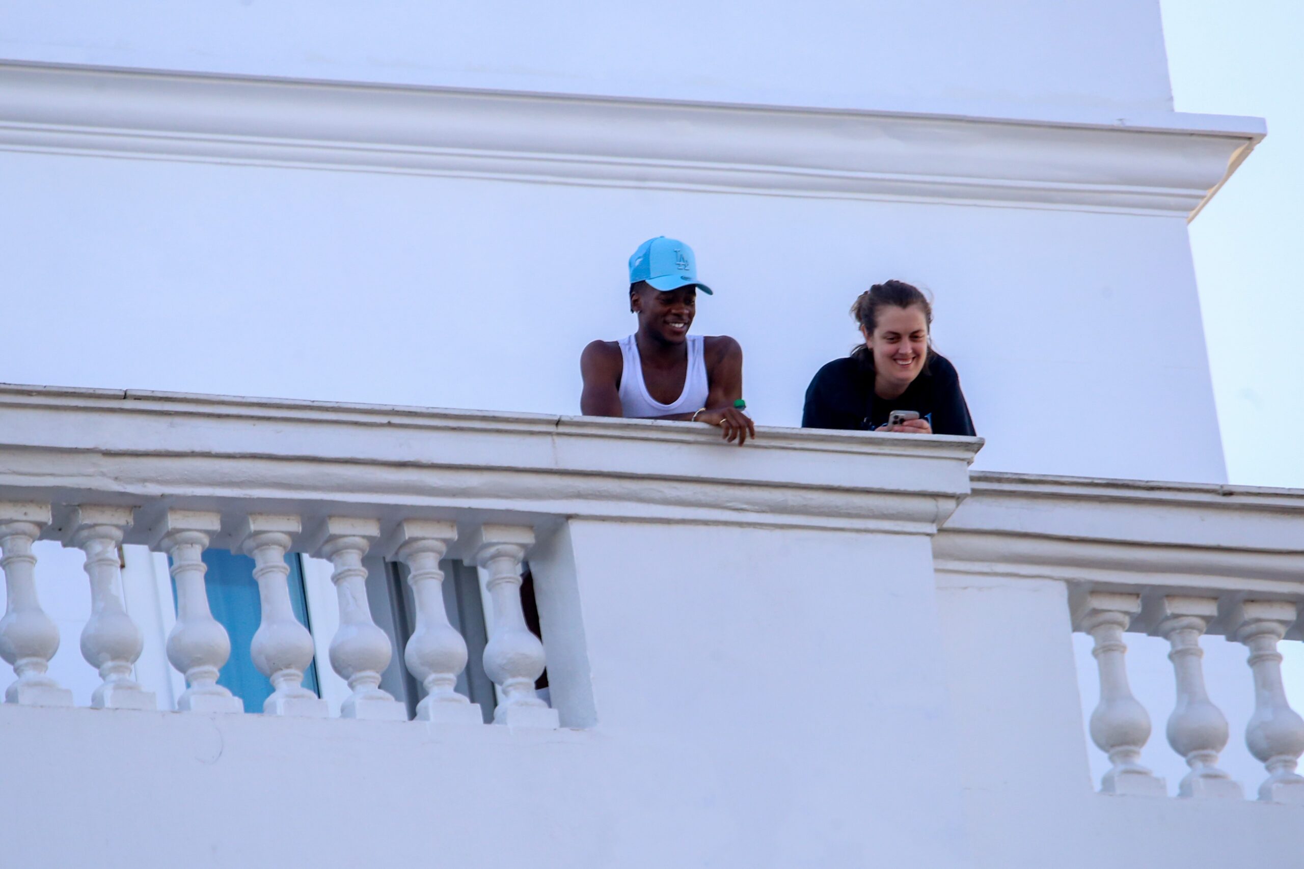 David Banda, filho de Madonna, observa o palco do show do alto do Copacabana Palace