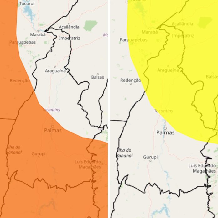 O Instituto Nacional de Meteorologia (Inmet) emitiu dois alertas de chuvas intensas para o Tocantins. Os alertas iniciaram nesta sexta-feira (5) e vão até às 10h deste sábado (6). Durante esse período podem ser registradas chuvas com volumes de 30mm/h a 50mm/h.