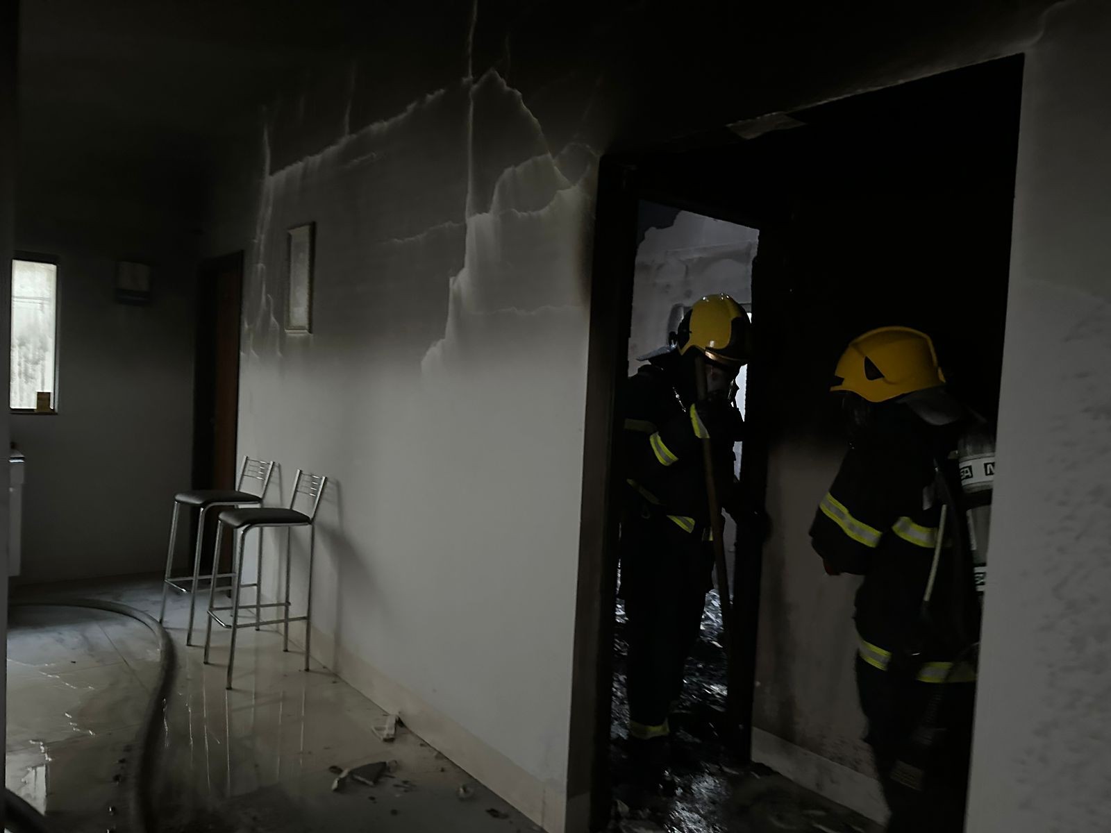 Bombeiros foram chamados e conseguiram apagar o fogo antes que destruísse a casa. Ninguém se feriu. Bombeiros tiveram que arrombar portas para combater incêndio